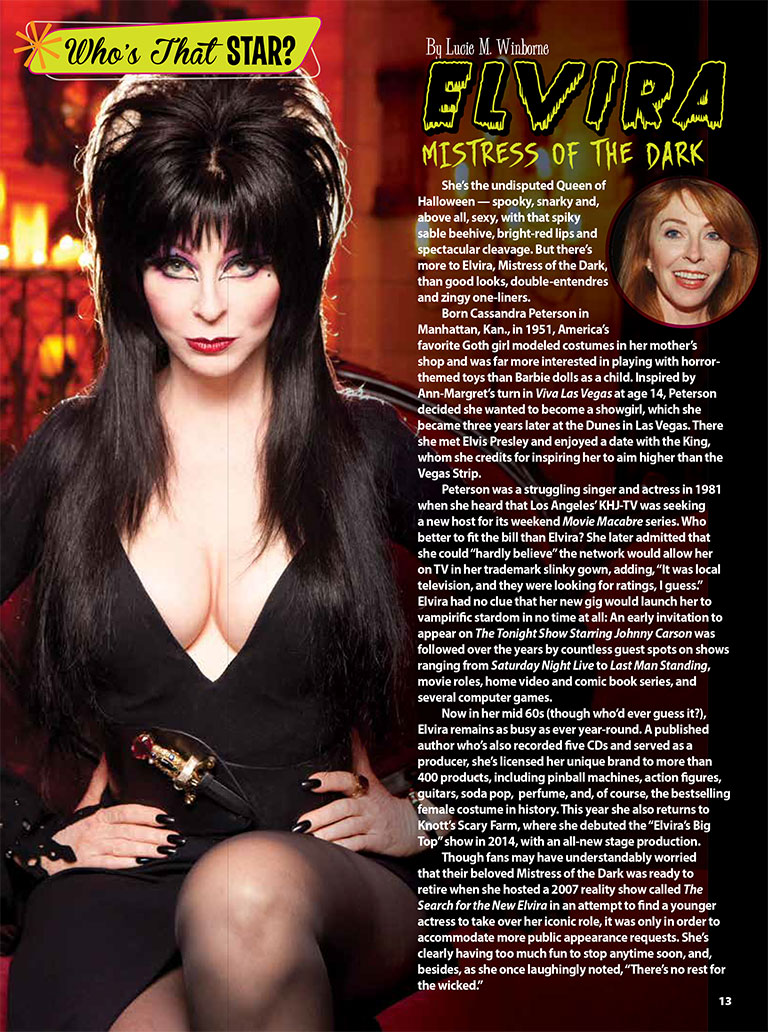 Have a howling good time with this spooky issue dedicated to hair-raising horrors in TV and film. The Wolf Man's Lon Chaney Jr. graces our cover, and two glossy pages pay tribute to other werewolf works that packed a bite. Plus, we check in with Hitchcock ingenue Tippi Hedron and horror hottie Elvira.